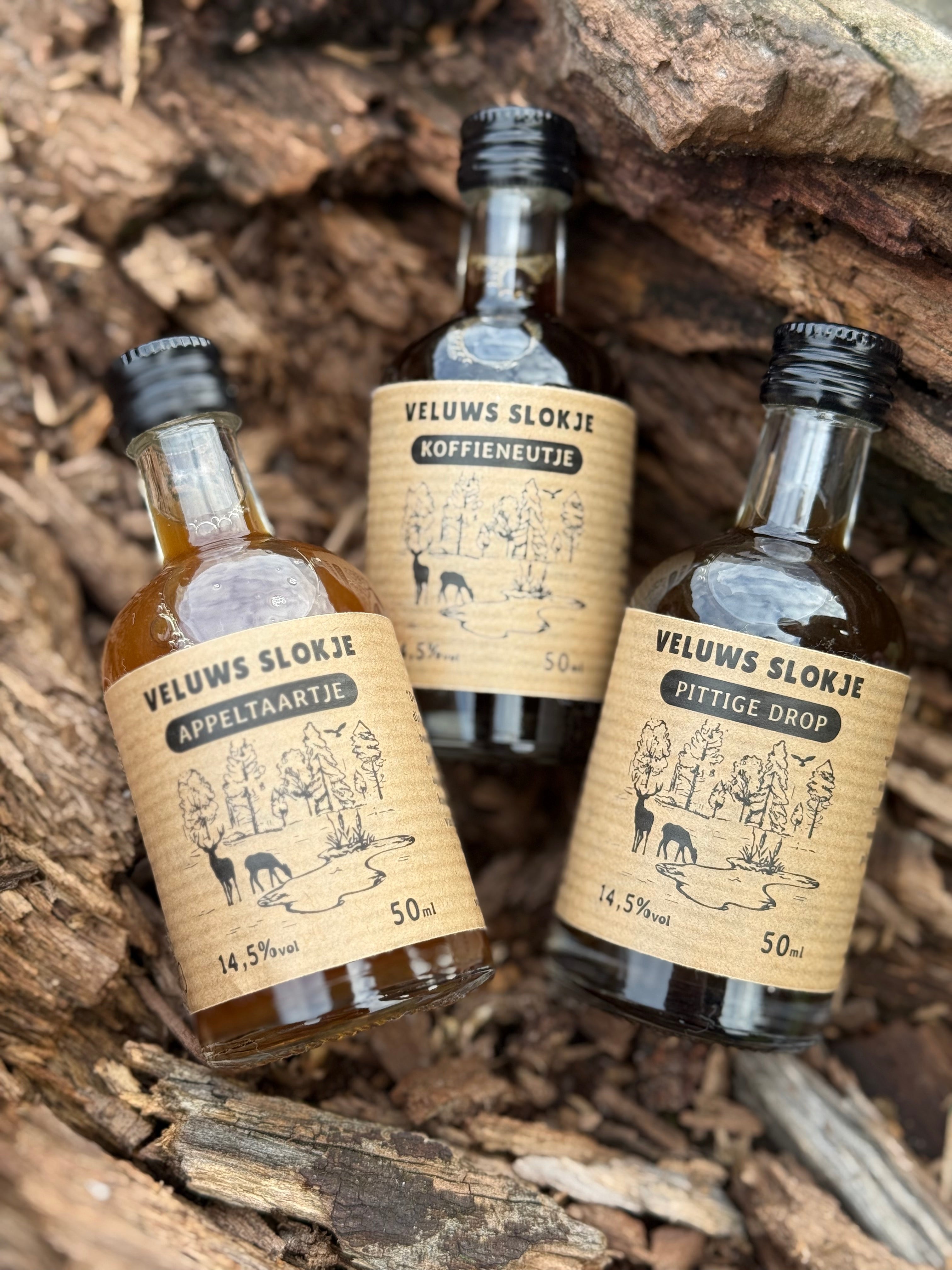 Met hetΒ Veluws ProeverijtjeΒ haal je drie verrassende smaken in huis. Geniet van het warme en huiselijkeΒ Appeltaartje, deΒ Pittige Drop met verrassende twistΒ en het vriendelijkeΒ Koffieneutje.